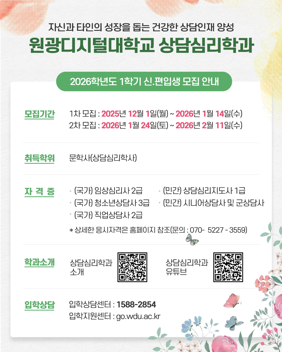 ¿ø±¤µðÁöÅдëÇб³ »ó´ã½É¸®Çаú ½ÅÀÔ»ý¸ðÁý